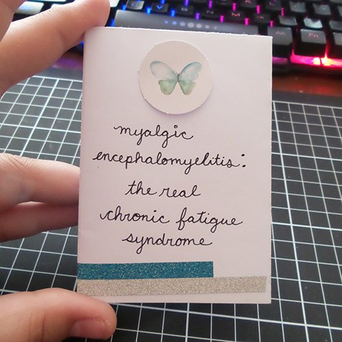 Okay, so it’s a cause slash awareness thing in that there is a bias when you call it ‘chronic fatigue syndrome’, but people listen when you say the scientific name: myalgic encephalomyelitis. So my cause is CFS awareness but also the bias in the name.