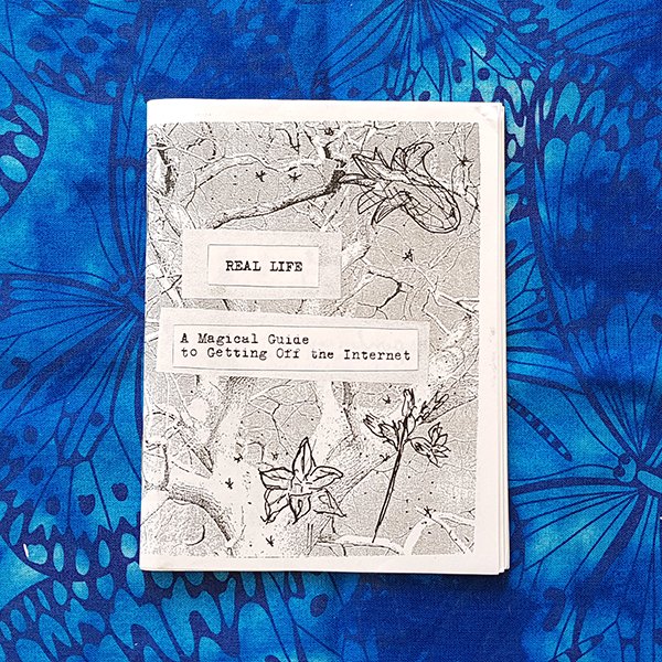 Real Life is a ¼ sized black and white zine about taking a look at how much you use the internet and how to step away when you’re using it too much.