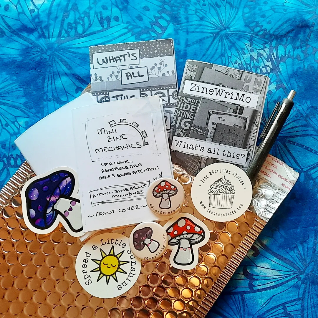 I knew I would enjoy today’s activity, but I didn’t realise just how much. I had fun thinking about what I would include in a zine kit that would be both fun and informative just in case the person receiving the kit didn’t know about zines. Hence this kit.