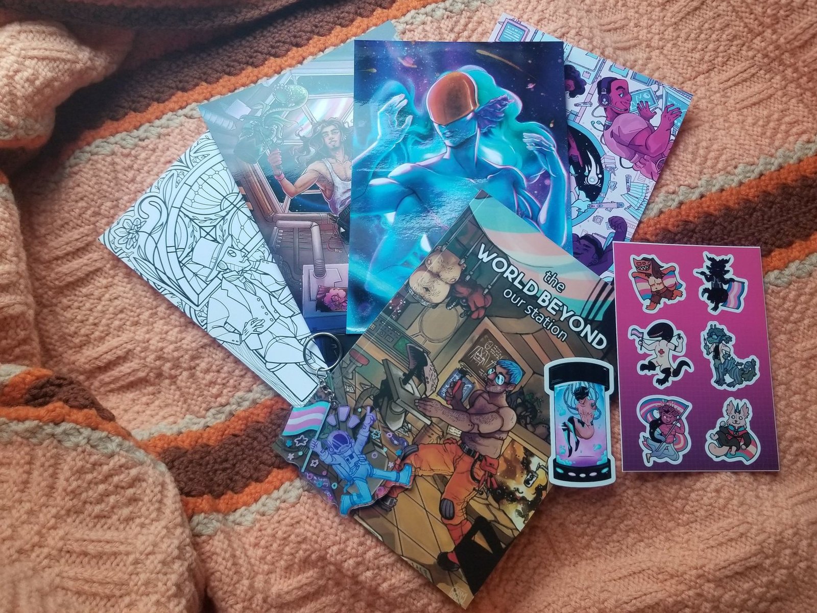 What is available? We are selling off leftover merchandise, following the shipment of all preordered goodies. There are A, B, and C grade zines, priced more cheaply for those with cosmetic damages for a more affordable purchasing option. In addition, we have stickers, prints, coloring pages, and acrylic charms still looking for homes! We recently added some leftover UK stock to the store as well, so we can offer more affordable shipping to buyers in the UK and EU while those supplies last; we also offer digital zines for folks who aren’t looking for a physical product.