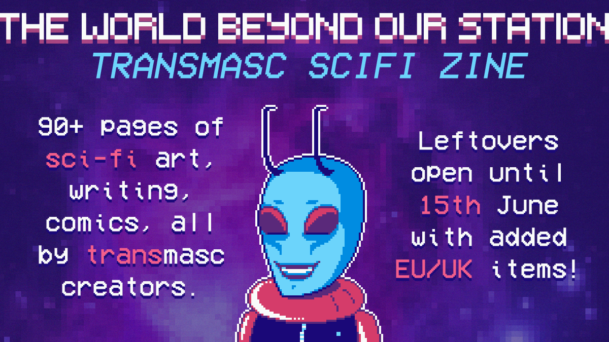 The World Beyond Our Station transmasculine sci-fi zine is running leftover sales! For a limited time between now and June 15th, zines will be available for purchase at our shop: https://worldbeyondzine.bigcartel.com/