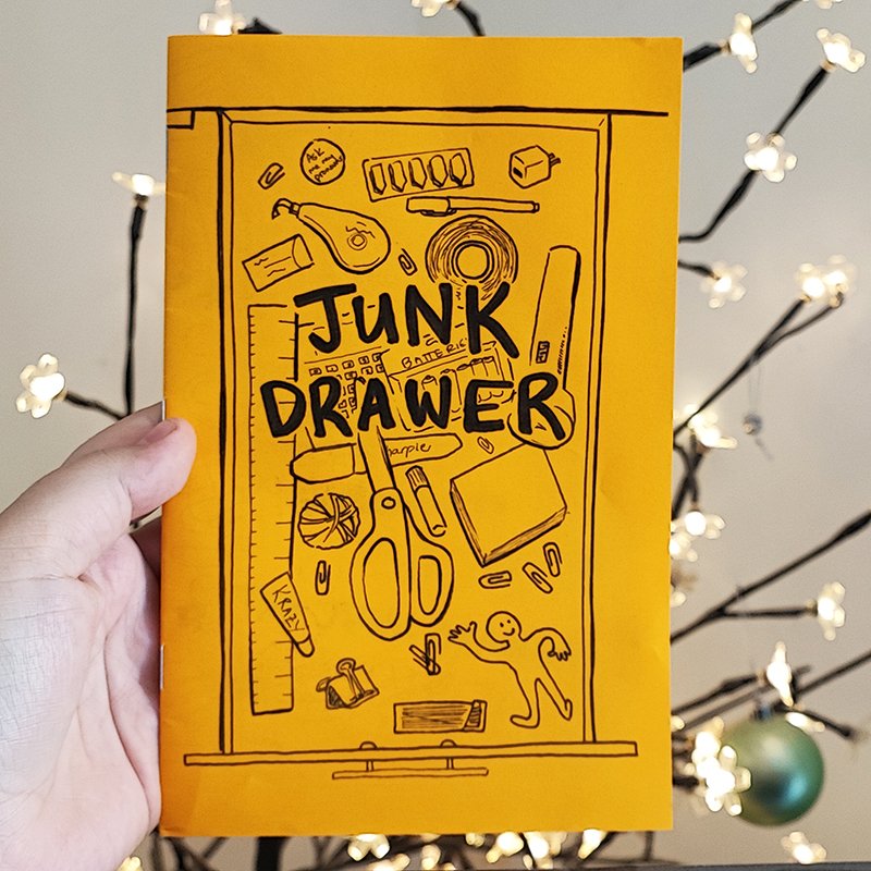 I really enjoyed this zine from concept to aesthetics. Junk Drawer reminds me a lot of ‘Lost Projects’ zine collab full of various unfinished projects. Maybe it’s getting a peek into those unfinished ideas, maybe it’s knowing that other people also have plenty of unfinished ideas. Perhaps both. Either way, this zine hits the spot on a number of levels, and I hope to see a long series of them.