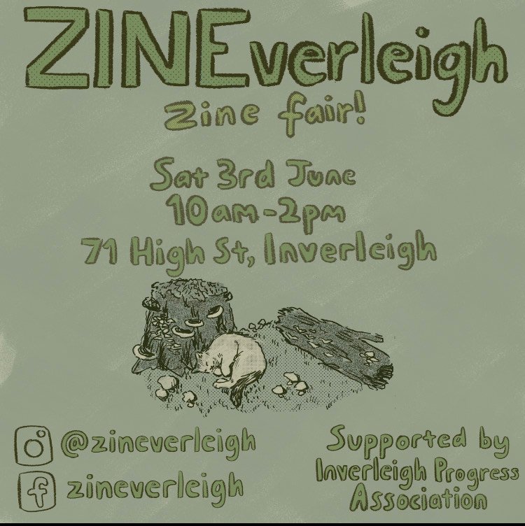 ZINEverleigh is a Zine Fair taking place in the beautiful country town of Inverleigh, Victoria in June 2023.