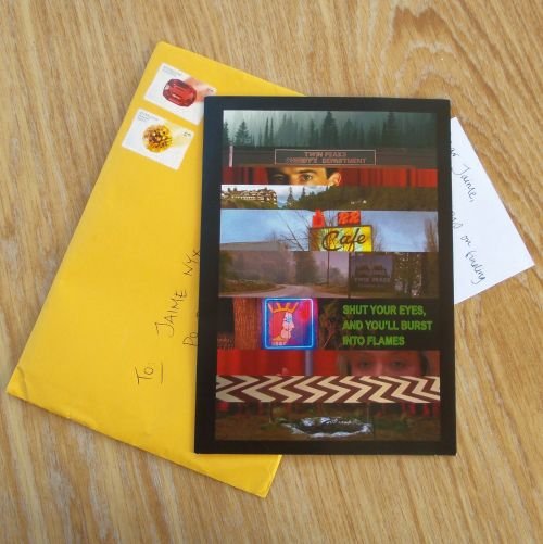 Bloomurder sent me a copy of her Twin Peaks fanzine! Oh my gosh. What an awesome housewarming present. (Yep, that’s what I’m calling it. Hehehe.) I was so disappointed to have missed the launch (they had doughnuts <3 ) at Sticky. I even asked about the printer for the zine because it looked gorgeous. Lo and behold, I have one to admire in my very own hands! I have special plans for it to…