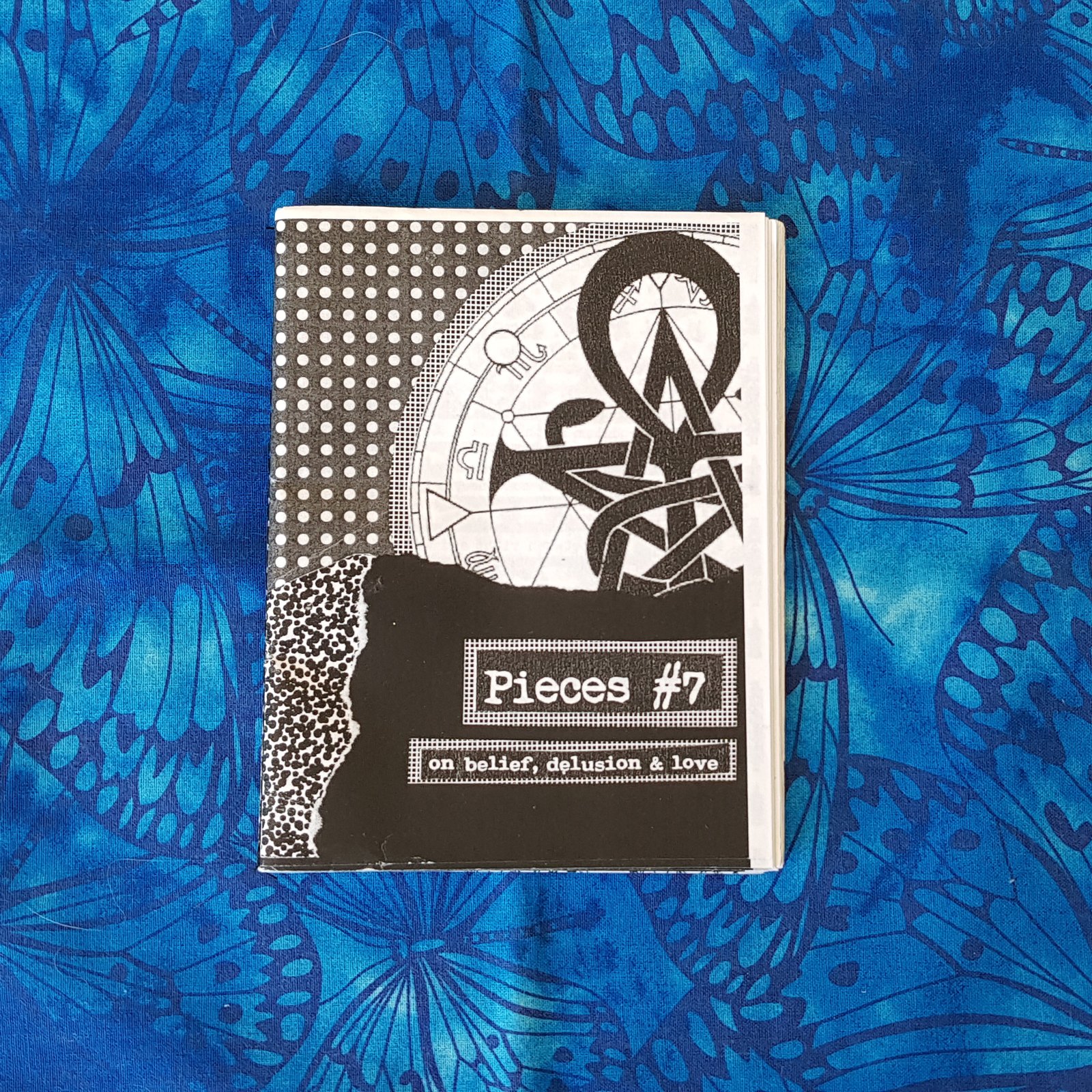 Pieces #7 is a quarter-sized black and white zine on belief, delusion, and love. On the realities we construct, the comforts we cling to, and finding a way to keep going when they all fall apart.